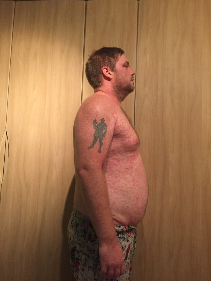 That’s all for an update for now. One last thing. Here is my weight loss pic for this week. It highlights that I’m going in the right direction when you compare it to the first one. Which can be seen half way down this post from 2 weeks ago. It also shows the extent of the prickly heat I’m suffering with.